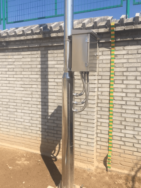 施工現(xiàn)場,監(jiān)控桿高度4.5米,材質(zhì)為純304不銹鋼,壁厚4mm。